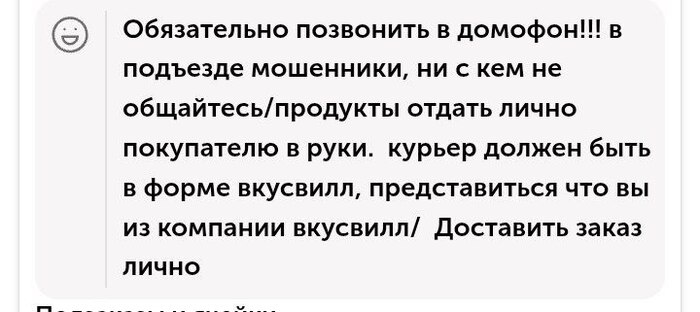 Купил квартиру в новом доме в Подмосковье, все было неплохо, сделали ремонт, соседи неплохие- обычные русские люди. Пока этажом ниже не заселили «социалку»: несколько детдомовцев и переселенцев из бараков. Началась лютая жесть: гадят в лифте, весь подъезд в бычках, средствах контрацепции. Но самый прикол- стали обманывать курьеров. Пасут на какой этаж едет, там быстрее хозяина встречают, забирают заказ и бегом к себе в квартиру. Морду бил, орал - не особо помогает. Теперь по всех моих заказах такая инструкция для курьера, ну, а что еще делать. Пост автора Maskroom. Читать комментарии на Пикабу.