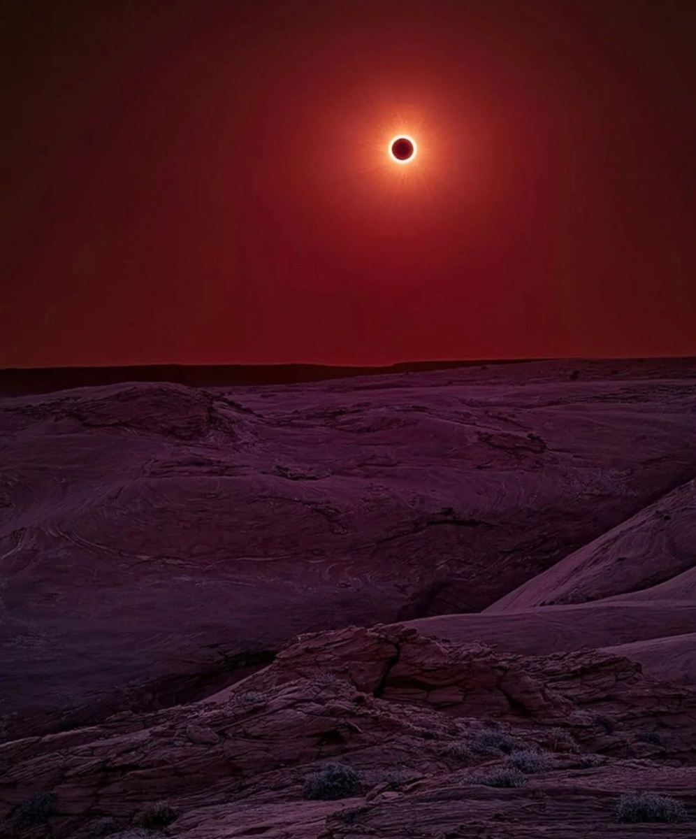 Это фотография солнечного затмения над каньоном Де Шейи, штат Аризона, полученная в 2012 году