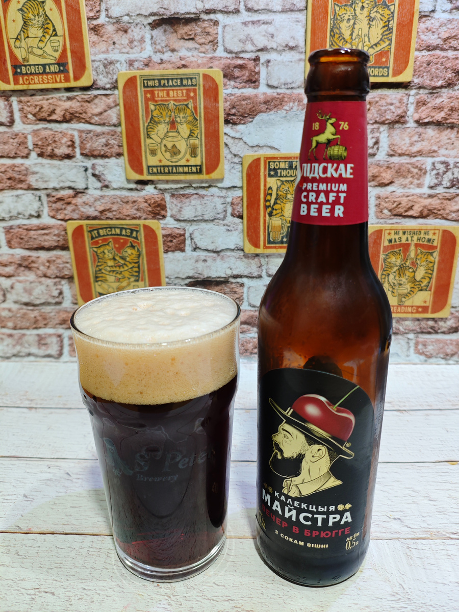 Изготовитель: ОАО "Лидское пиво", Республика Беларусь. На сайте пивоварни можно прочитать следующее: Первое пиво в линейке КАЛЕКЦЫЯ МАЙСТРА, которое выпускается с 2014 года. Это тёмное пиво с лёгким вишнёвым оттенком и выразительным ароматом. Продукт имеет приятный, мягкий вкус с насыщенными тонами вишни, дополненными сладостью карамели и лёгкой хмельной горечью. ********************************************************************************** Плотность: 11.2%. Горечь: 12 (на сайте пивоварни). Состав: вода подготовленная, солод светлый пивоваренный ячменный, солод пивоваренный ячменный карамельный, сахар, смесь экстрактов «Вишня» (экстракт вишни, концентрированный сок вишни, экстракт бузины) (либо, как в моём случае: сокосодержащая основа "Вишня" (сок концентрированный чёрной моркови, сахар, ароматизаторы, сок вишни, сок бузины), сахарный сироп карамелизованный, СО2-экстракт хмеля, хмель гранулированный Перле. Срок годности: 9 месяцев при температуре хранения от 0℃ до +25℃. С даты ро