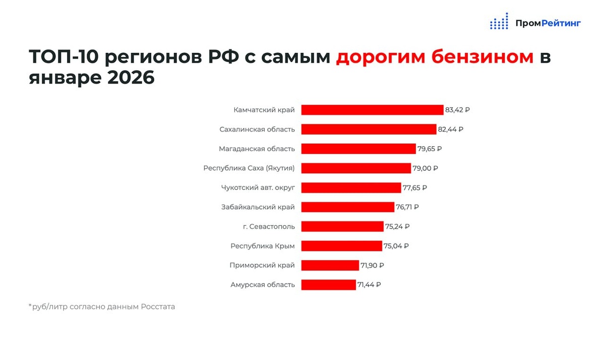 На цены 2025 года влиял не рынок, а предвыборная ситуация на полуострове. Согласно данным официальной статистики за январь 2026 года индекс потребительских цен на бензин автомобильный по сравнению с декабрем 2025 года составил 101,4% (в сравнении с аналогичным периодом прошлого года — 111,6%). Преимущественное снижение цен все же было временным послаблением под конец прошлого года, сменившись в текущем традиционным ростом. На Камчатке с января по ентябрь 2025 года цены на топливо были искусственно заморожены. После выборов губернатора с середины сентября дизель бензин дорожали чуть ли не каждую неделю. Повышение стоимости бензина на 1,4% и более зафиксировано сразу в 42 регионах, причем наиболее значительное увеличение произошло в Магаданской области (+3,0%) и Омской области (+2,9%). Лишь девять субъектов показали обратную динамику, среди которых лидируют Республика Дагестан (-3,5%) и Республика Тыва (-3,1%), продемонстрировавшие самое существенное снижение цен. Столица и культурная