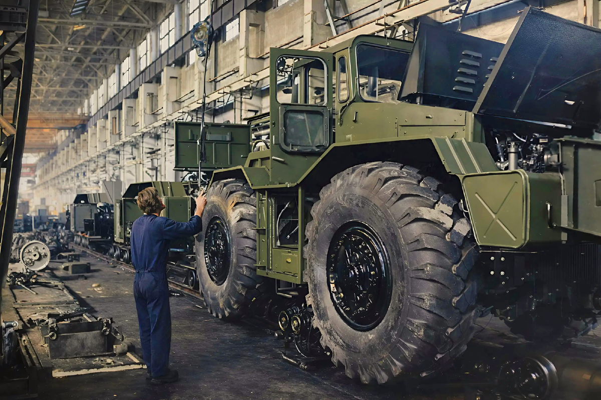 В Кургане когда-то работало предприятие, чья техника могла утащить на буксире двухсоттонный самолет прямо по взлетной полосе. Тягачи КЗКТ перевозили танки, пусковые ракетные комплексы, тяжелое буровое оборудование для нефтяников. Каждое утро через проходную шли 11 тысяч человек. А потом предприятие обанкротилось. И на месте сборочных цехов открылись магазины. Рождался завод без всякого размаха. В 50-м году в Кургане на площадке эвакуированного «Уралсельмаша» запустили производство сельхозтехники — бороны, молотилки, силосорезки. Но к концу 50-х стране потребовались тяжелые колесные машины, и тихий заводик в Зауралье получил другую судьбу. Минское КБ передало сюда чертежи и оснастку тягачей МАЗ-535. А в декабре 63-го из минских комплектующих в Кургане собрали первый МАЗ-537. Четыре оси, полный привод 8×8, танковый дизель Д-12А на 525 л.с. По шоссе такая машина тащила полуприцеп до 65 т. А версия 537Г с лебедкой брала на себя танк на платформе — 68 т полной массы. В 66-м заводу дали имя