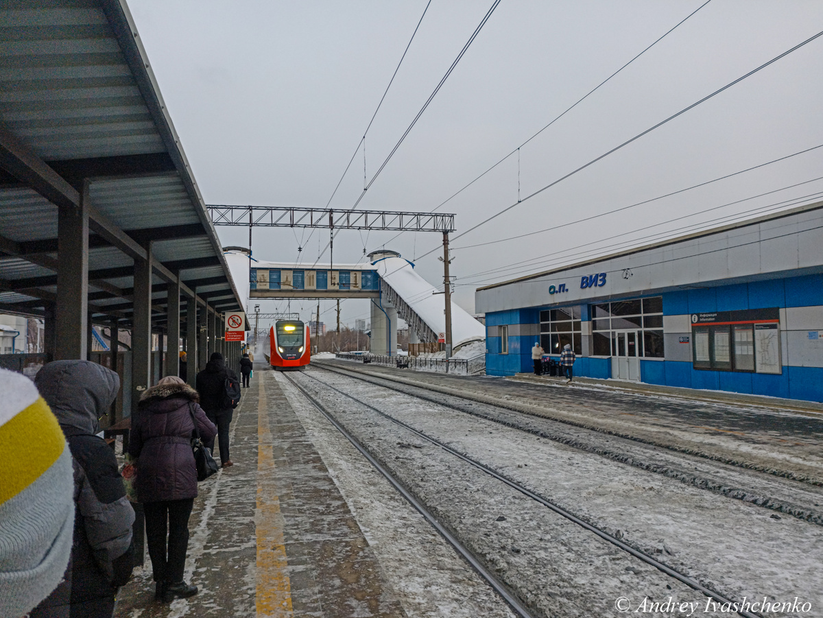Всем привет. Недавно я проехал впервые на электропоезде серии ЭС104 "Финист" от Екатеринбурга до Коуровки. Данная серия электричек - отечественная версия электропоездов "Desiro", известная как "Ласточка". Поездка на Финисте началась с о.п. ВИЗ, которая находится в Екатеринбурге. Длина маршрута - 74 километра. Электропоезд ЭС104-040 сообщением № 7053 Екатеринбург - Кузино. На ней я поеду. Отправляемся в 17:43 по местному времени. В публикации будут указаны только те станции и платформы, где есть остановка. Во время движения по железнодорожному узлу Екатеринбурга всегда интересно наблюдать за движением поездов. Перегоняемый на восток тепловоз 2ТЭ116. о.п. Электродепо. Но куда приятнее увидеть электровоз ВЛ11 (в центре), которых становится все меньше. Екатеринбург-Сортировочный. Бывший вокзал. Северка. Здесь же. Церковь. Екатеринбург остался позади. Хрустальная - первая станция на территории азиатской части России на главном ходе Транссиба, но в нашем случае последняя, так как движемс