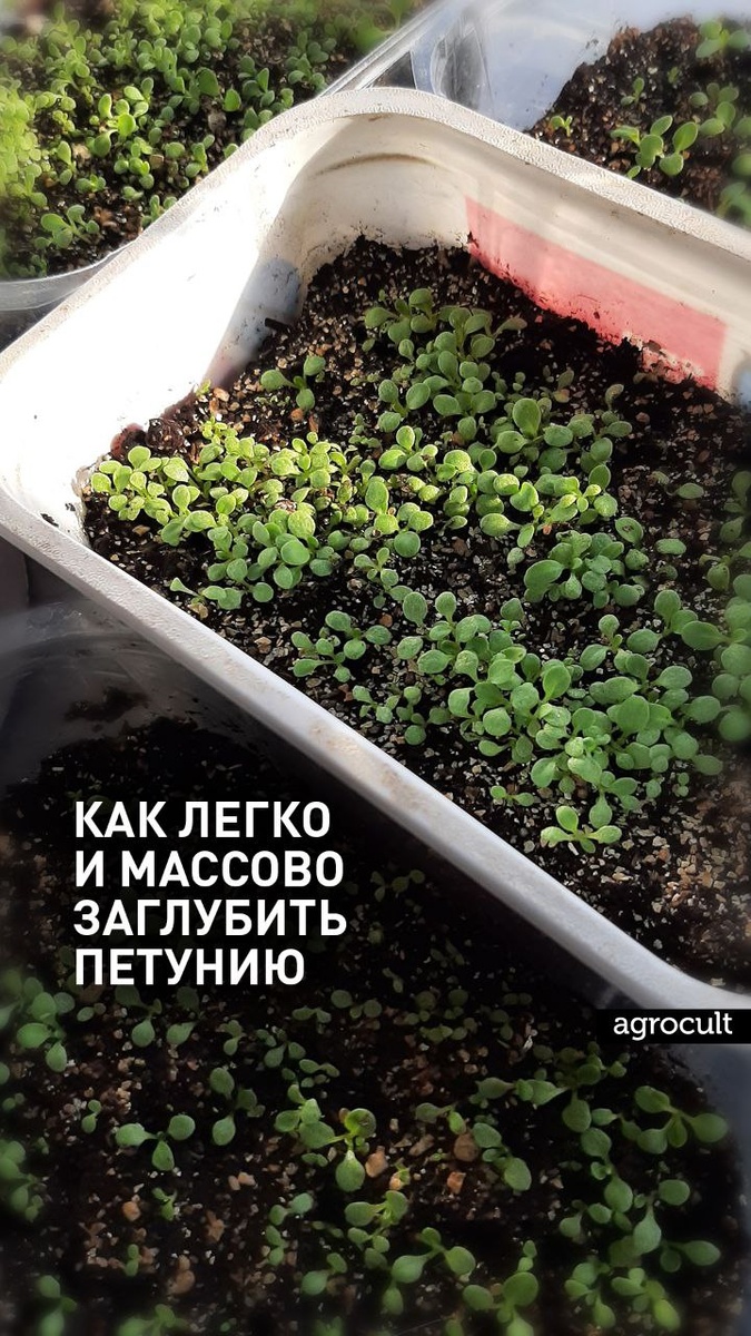 ? Тянется вверх тонюсенькая! «Петуния вытянулась, а её много, сеяла россыпью. Стоят хлипкие, не знаю что делать?» Привет, друзья!❤️ Таких вопросов много. Это касается и петунии, и лобелии. Рецепт прост. Бояться не надо. Это рабочий метод. Даже, если совсем тонкие и длинные. Закапываем. Глаза боятся, а руки делают. 📌Способов всего три: - зубочисткой по отдельности; - посевом в борозды; - массовый, при посеве россыпью. Здесь о нём. Заглубляем петунию путем присыпания ее грунтом сверху. ❗Здесь есть одна важность: НЕЛЬЗЯ мочить растения перед этой процедурой, чтобы грунт не прилипал к сеянцам. Оптимально просеять грунт через сито и смешать с вермикулитом или взять чисто вермикулит мелкой фракции — с ним вообще очень удобно и безопасно — он воздушный, но питания меньше. Грунт должен быть сух и сыпуч. Если влажный, то предварительно высушить. Растения «усилить»: оставьте (постепенно) их на сутки без крышки и только тогда засыпайте грунт. В финале опрыскиваю раствором перекиси. 📌Р