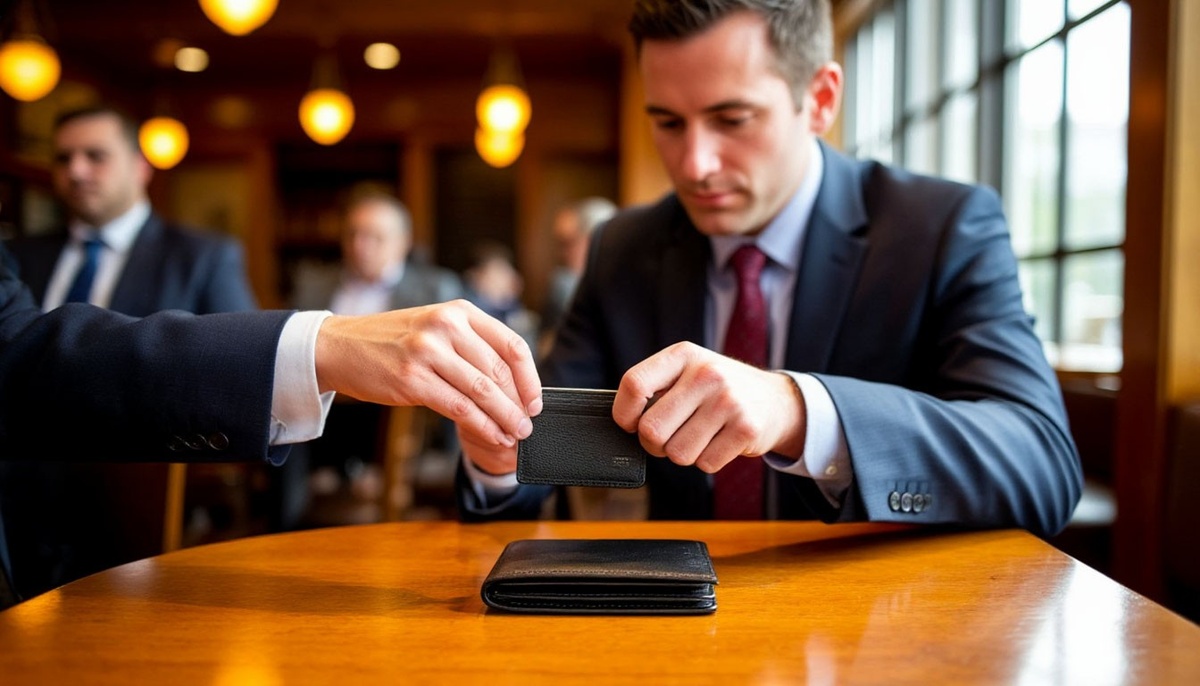 Найдя кошелек под столиком, техничка ресторана догнала бизнесмена уже на парковке. Она запыхалась — бежала через весь зал, лавируя между официантами, и теперь ловила ртом воздух, протягивая тяжелый лопатник из тисненой кожи.