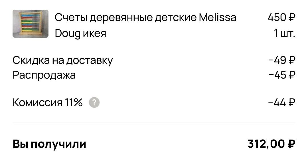 Но даже вот так — когда на профиле всего 15 активных объявлений, когда новые объявления на Авито выкладывала от случая к случаю, когда за месяц не было ни одной продажи дороже тысячи, а только дешевые товары — получилось набрать за месяц больше 11 000.