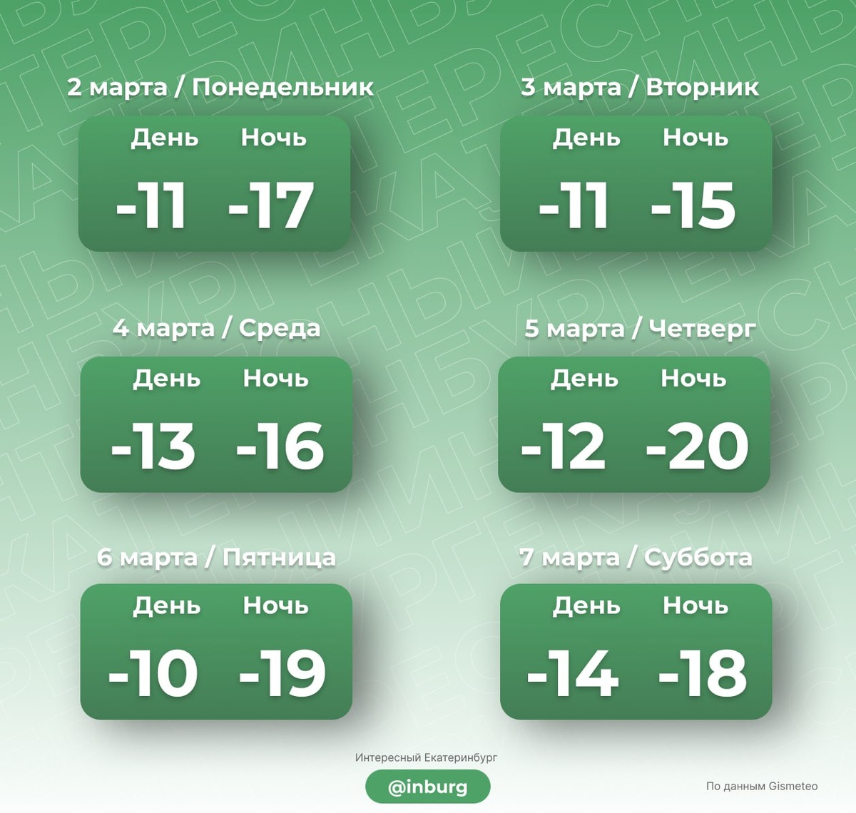 В Свердловской области снова обещают похолодание до -20℃ Как говорят синоптики, уже в понедельник ночью температура опустится до -17℃. А на неделе днем будет от -10℃ до -14℃. Подробный прогноз на неделю — в карточке. 📱 Мы в MAX | 📱 Мы ВКонтакте
