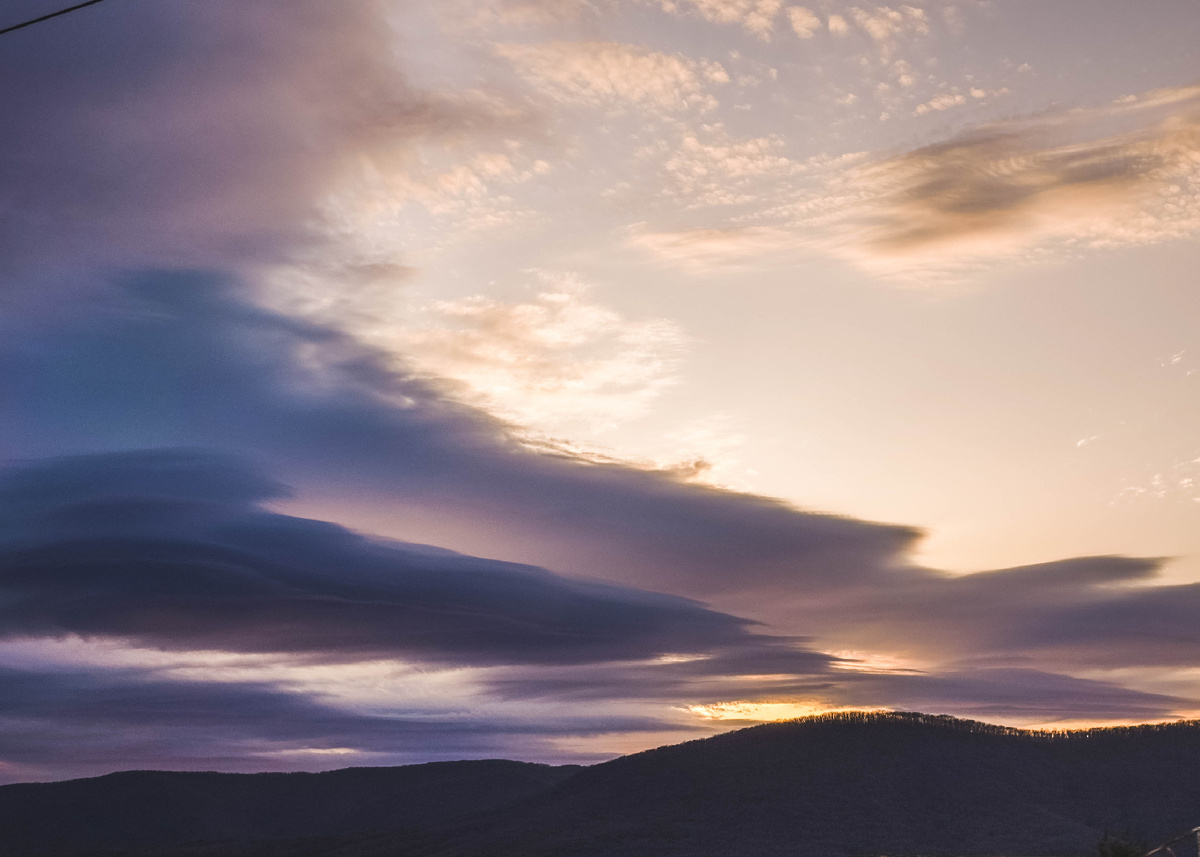 Потрясающий по своей красоте закат был в Широкой балке. Вроде бы и солнце опускалось в дымку. Но его последние лучи подсветили изнутри облака и небо вспыхнуло оттенками оранжевого, пурпурного и синего... 🌅