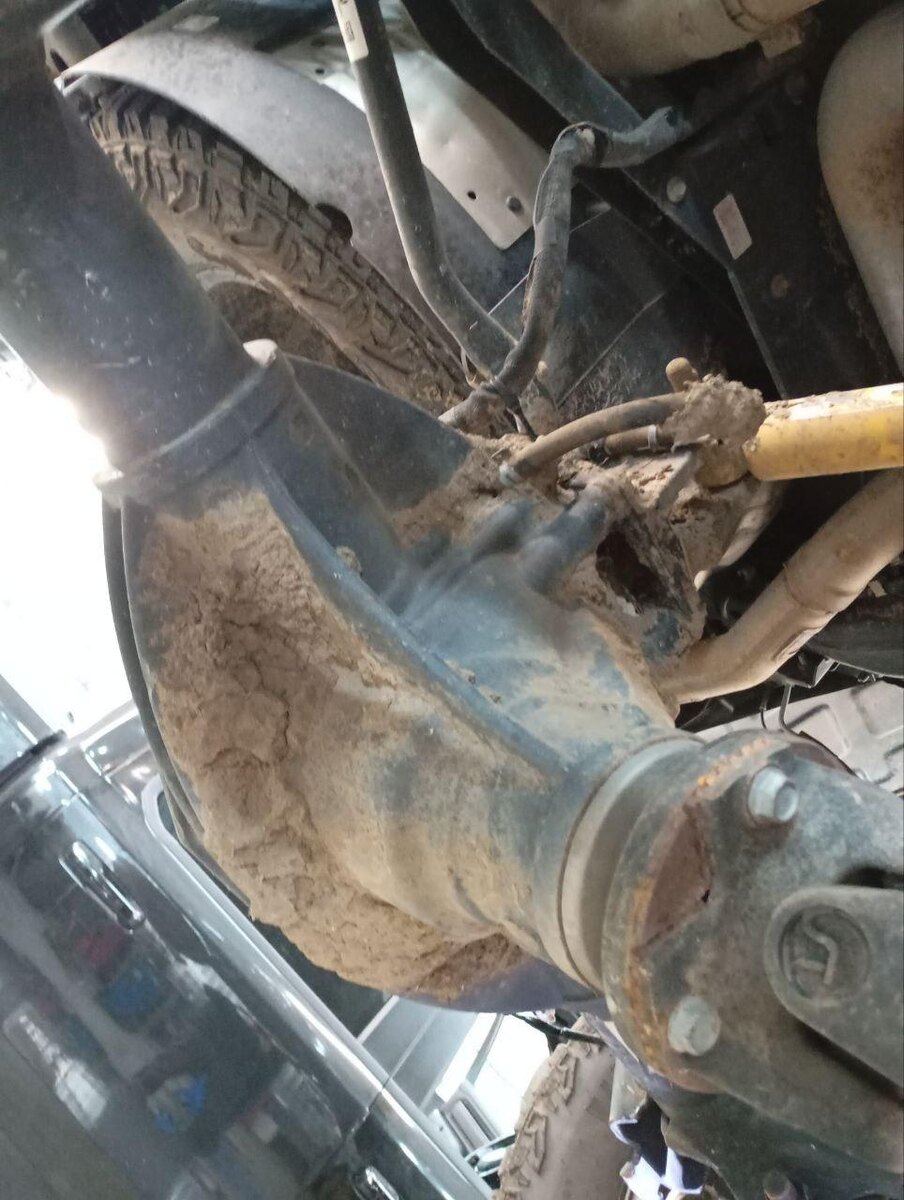 килограммов американской земли. Видно, что пикап использовался по прямому назначению, и владельцу пришлось уходить от преследования рельефа на предельных скоростях. Мы приняли автомобиль на комплексную мойку радиаторов и полную инспекцию ходовой части после экстремальных нагрузок. В процессе обслуживания из скрытых полостей рамы и рычагов удаляются залежи грунта, которые могут блокировать дренажные отверстия. Особое внимание уделяется состоянию пыльников активных амортизаторов и проверке герметичности впускной системы. Воздушные фильтры проверяются на наличие мелкодисперсной пыли, а радиаторы охлаждения двигателя и трансмиссии очищаются от забившейся грязи для исключения перегрева мощного компрессорного мотора. Мало кто задумывается, что штатная система забора воздуха у TRX — это настоящее инженерное достижение: она способна отсеивать до четырех килограммов грязи и песка, прежде чем они достигнут фильтрующего элемента. Специальный массивный «ящик» над двигателем объемом 29 литров раб