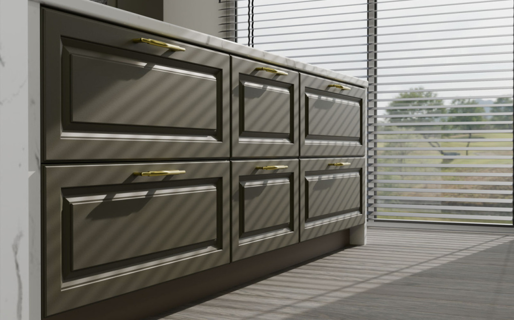 В этом случае первостепенное значение имеют безопасность и износостойкость. Выдвижные системы должны выдерживать значительные нагрузки, фасады — закрываться бесшумно, а механизмы — функционировать без резких движений и сохранять работоспособность. В коллекции Богема применяется комплексная система доводчиков и высоконадежные петли, минимизирующие риск травматизма и увеличивающие эксплуатационный ресурс гарнитура.