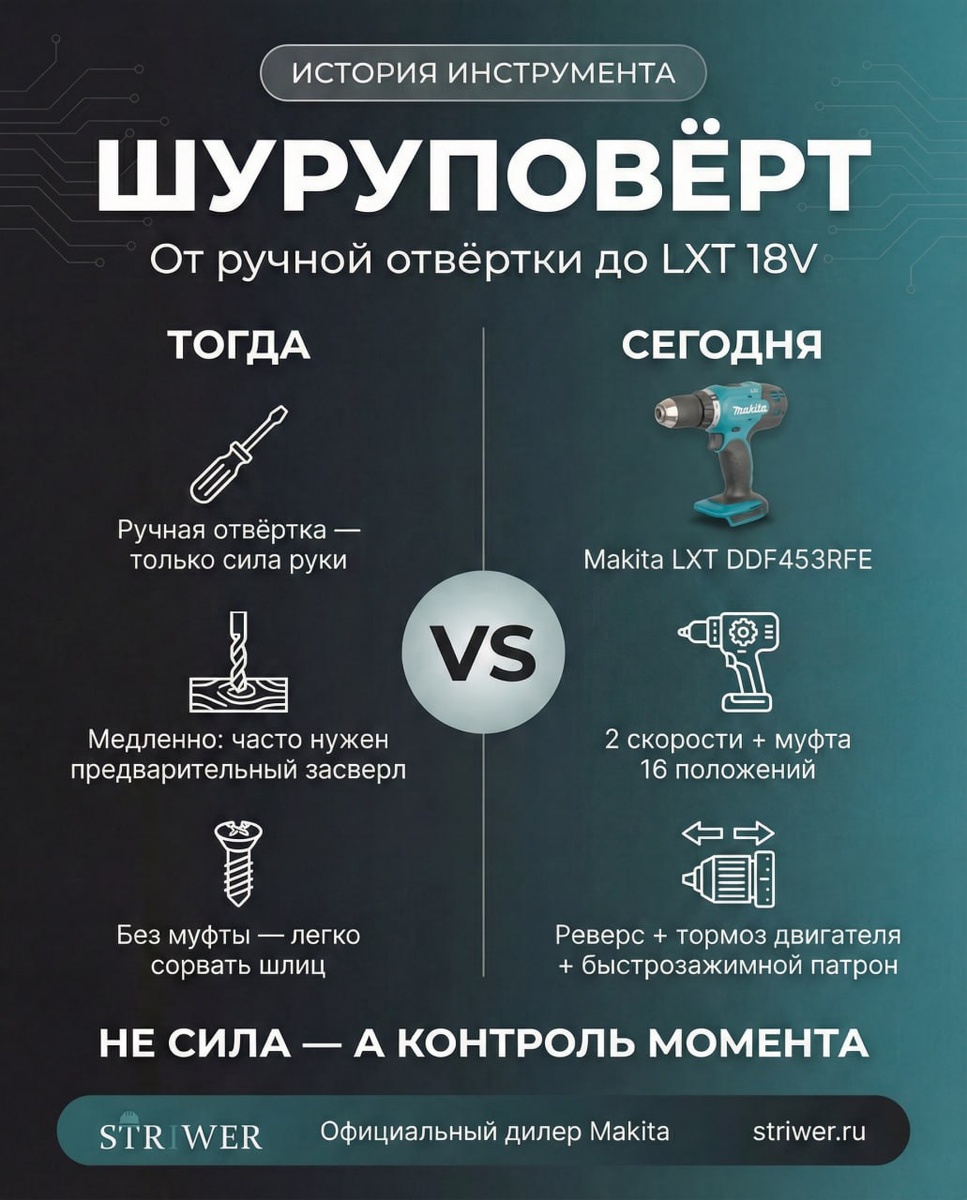 STRIWER • История инструмента — Шуруповёрт: от ручной отвёртки до LXT 18V