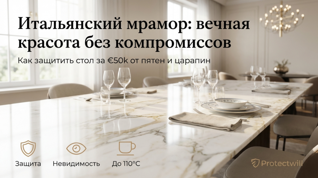 Защита обеденного стола из итальянского мрамора: бронеплёнка vs накладка