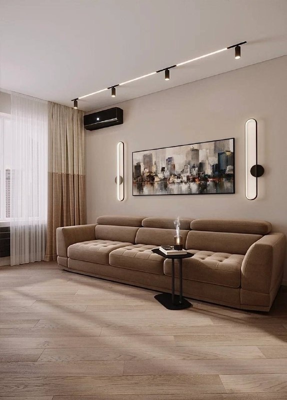Заказчик хотел качественные материалы и мебель. Поэтому центральным объектом проекта выбран лаконичный диван с европейским уровнем комфорта Malta от бренда «Мебель братьев Баженовых».