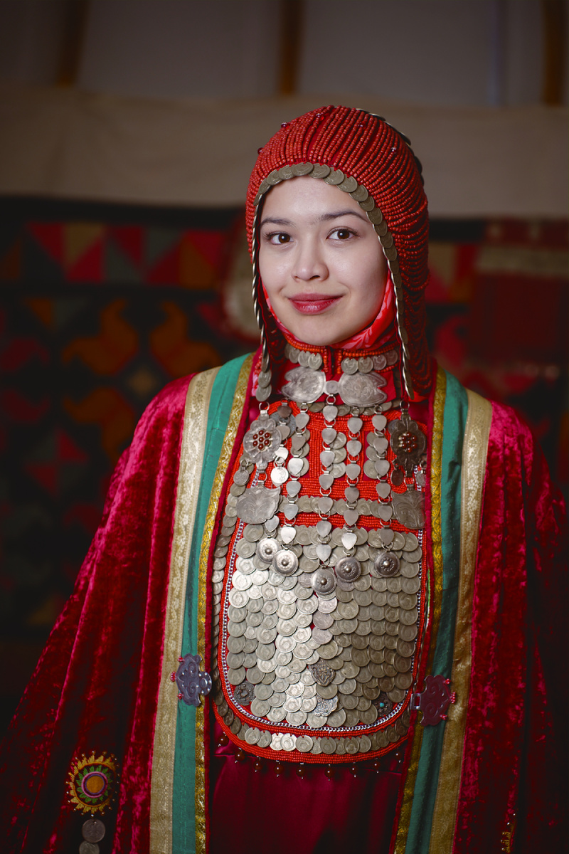 Представьте кадр: Она стоит в шикарном национальном костюме. Расшитый золотом камзол переливается в лучах софитов, длинное платье струится по войлочному полу аутентичной юрты. В глазах — огонь и загадка. Рядом — детали интерьера, которые переносят вас из шумной Уфы прямиком в бескрайние степи, полные поэзии и свободы.