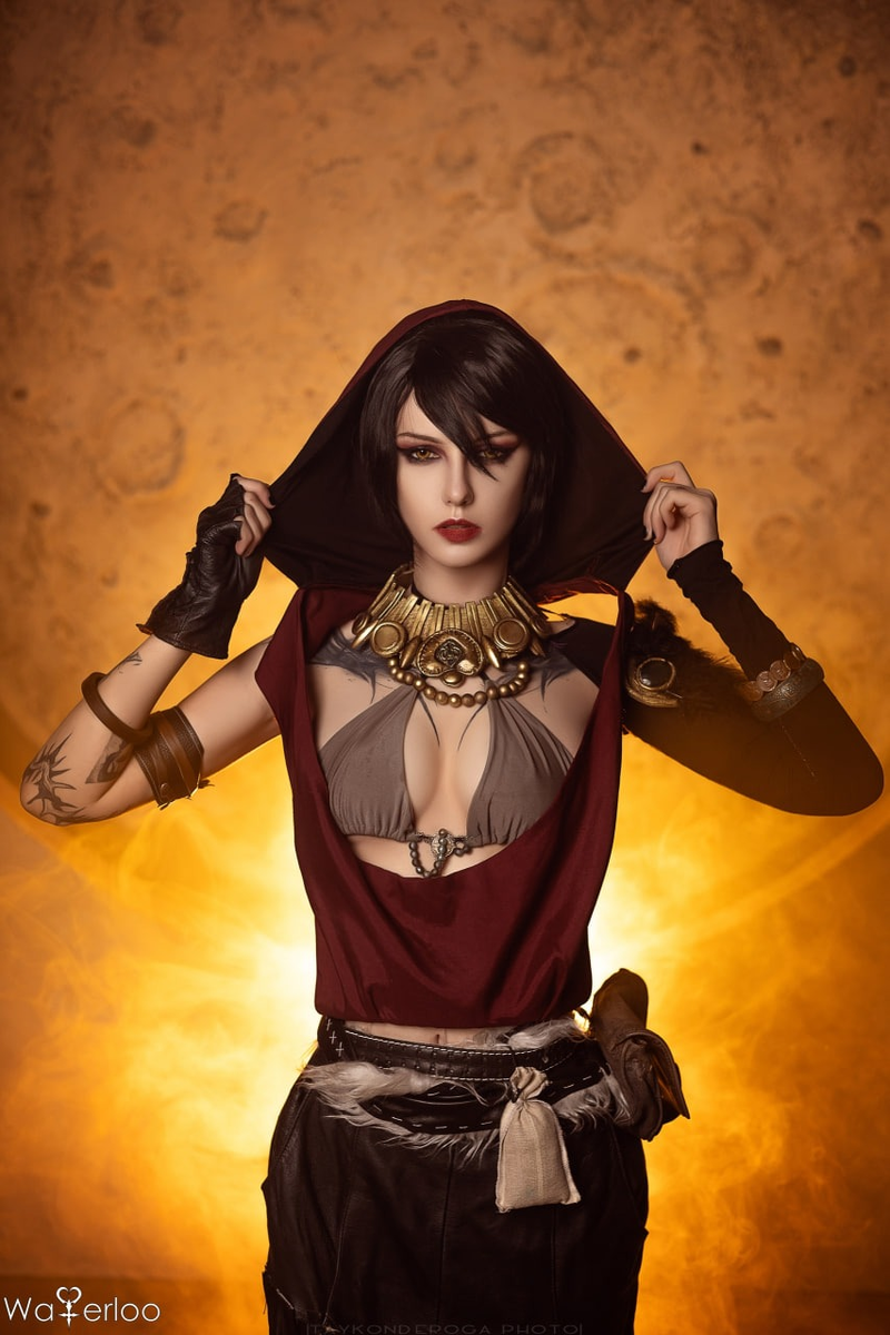 Морриган из Dragon Age — воплощение дикой магии и внутренней силы, и в исполнении Waterloo этот образ раскрывается особенно атмосферно. Огненное свечение за спиной, густой дым и суровые каменные декорации создают ощущение древнего ритуала, а массивное золотое ожерелье, кожаные элементы и посох в руке подчёркивают её статус ведьмы из Диких земель. Взгляд строгий и пронзительный, позы уверенные, подача харизматичная — косплей выглядит как живой кадр из тёмного фэнтези, где Морриган готова изменить ход истории одним заклинанием. Фэндом: Dragon Age