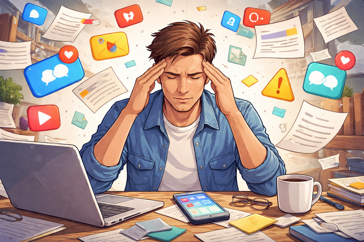 Есть такой странный момент: ты вроде бы ничего тяжелого не делал, а устал так, будто разгрузил фуру. Виноват не только недосып. Часто это информационный шум. Он коварный: не бьет одним ударом, а капает, капает, капает. В итоге ты ловишь себя на том, что не можешь дочитать даже короткий текст, постоянно дергаешься на уведомления и почему-то раздражает даже погода.