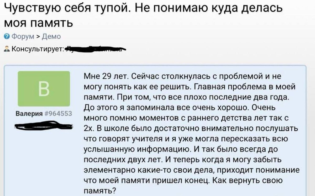🔥 Кто был онлайн — вы уже почувствовали разницу? Но зарядка — это разминка. А теперь — к реальности. На одном из форумов увидел такое сообщение👇🏻 «Мне 29 лет… чувствую себя тупой. Не понимаю, куда делась моя память…» (на скрине полный текст) Мы недавно провели исследование: собрали ответы из анкет и комментариев, посмотрели, как люди сами описывают изменения. Чаще всего звучит примерно так: — «раньше запоминал с первого раза, сейчас — приходится повторять» — «в разговоре теряю мысль и не могу быстро подобрать слова» — «в моменте “вылетает” то, что точно знаю» — «стала медленнее принимать решения» И, к сожалению, это не только субъективное ощущение. По данным исследований: ▪️ Среднее время концентрации внимания за последние годы снизилось примерно с 12 до 8 секунд (исследование Microsoft, 2015). ▪️ Исследование Стэнфорда показало: люди, постоянно работающие в режиме многозадачности, хуже удерживают и фильтруют информацию. ▪️ По данным University of California, человеку тр