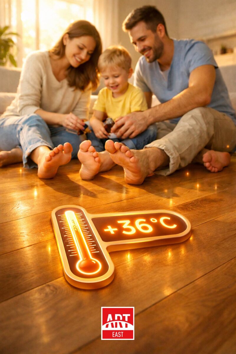 🤍 Есть такой особенный момент: вечер, вся семья уже дома, кто-то читает, кто-то рисует на полу, а ты просто ставишь чайник и смотришь на них. И на душе так спокойно... потому что дома хорошо. В прямом смысле хорошо. Мы сделали так, чтобы в этом доме было тепло не только от объятий. 🌡 Почему +36°C? Потому что это естественная температура тела. Пол не «жарит», а мягко обнимает стопы. Комфортно и безопасно для самых маленьких. 🌡️Напольные покрытия от ART EAST подходят под нагрев до +36° 🌡️