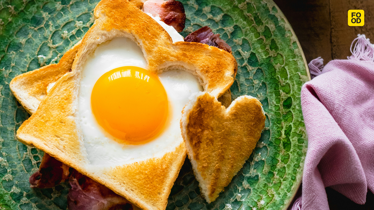 Тот самый хруст тоста с воздушными яйцами. При взбивании белков берите холодные яйца и не забудьте добавить щепотку соли, чтобы получить необходимую текстуру. Подавайте к столу с ветчиной или паштетом.