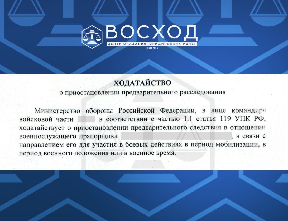 Шестеро военнослужащих, включая прапорщика и пятерых рядовых, числились фигурантами уголовных дел. • Все они уже были направлены в зону боевых действий. • Формально следственные органы продолжали вести расследование, дергая запросами и требуя явки. До прихода ко мне, командование пыталось отправить стандартные запросы самостоятельно. Но в документах обнаружились технические ошибки (опечатки в номерах отделов, датах и званиях), из-за которых рапорты не принимали. 👉Что мы сделали? ✅ Мы провели диагностику ситуации и выявили несоответствия в оформлении. ✅ Разъяснили нюансы применения статьи ✅ Составили новые мотивированные ходатайства на каждого ✅ Исправили технические ошибки в «шапках» документов и обоснованиях, чтобы исключить формальные отписки со стороны следственных органов. 🎯 Результат Благодаря составленным документам, следствие было приостановлено. Юрист: 89526818822 (тг, макс) voshodprav.ru