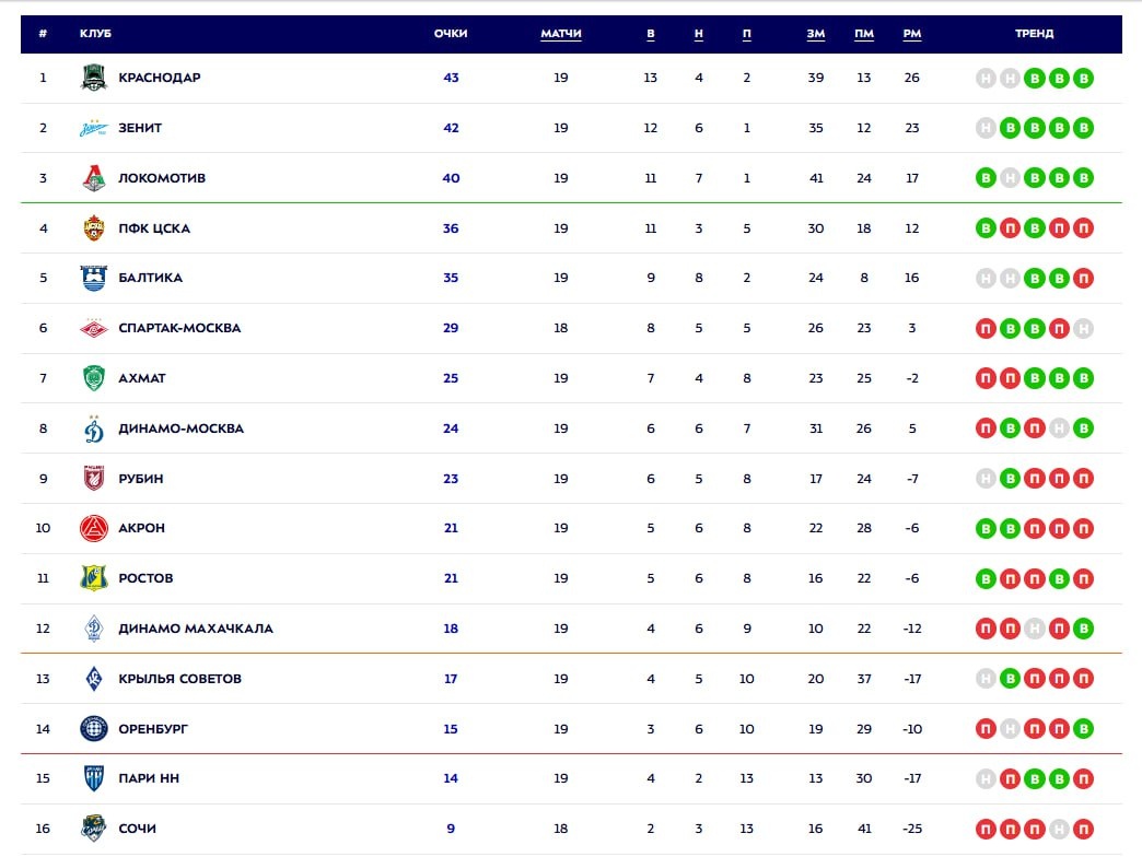 Таблица по итогам 19 тура, матч Сочи с мясом на нас уже никакого влияния не имеют.