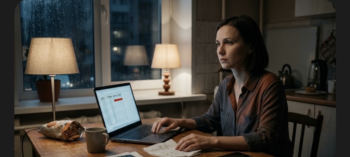 Она сидела над таблицей и думала странную вещь. Не «как она могла» и не «я дура». Думала вот что: я это знала. Где-то глубоко, в той части себя, которая умеет считать, — я это знала давно. Просто удобнее было не смотреть.