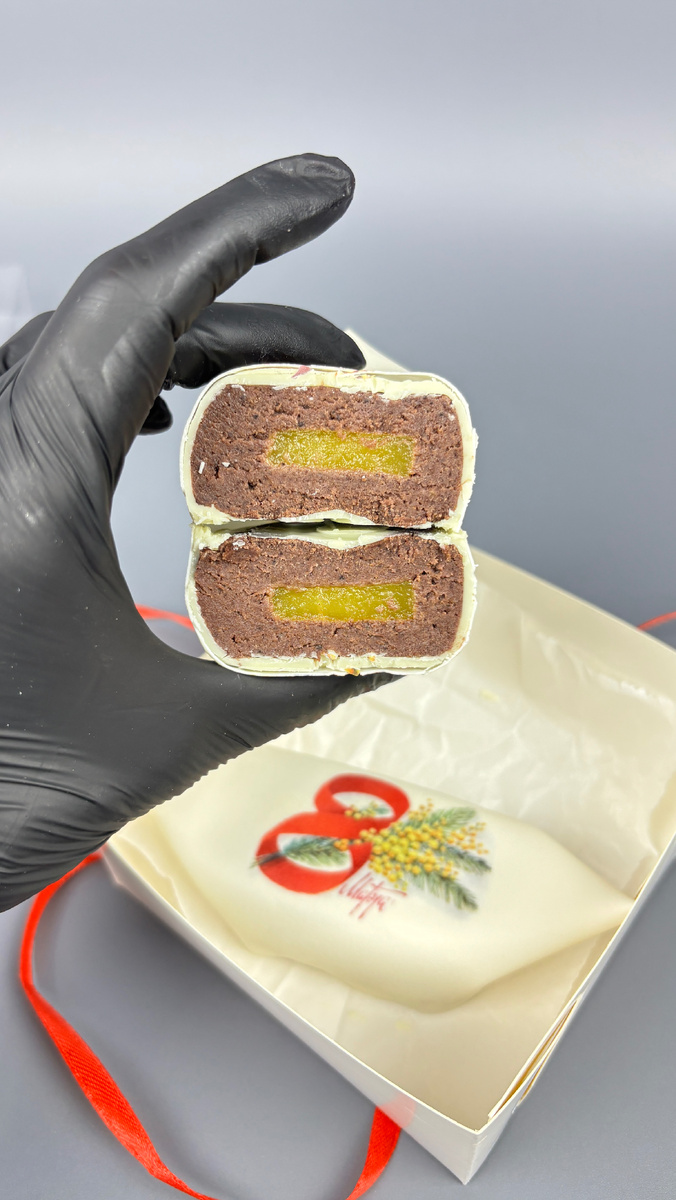 Когда-то оно у меня было просто в форме эскимо на палочке. А теперь — полноценное пирожное с начинкой внутри. Та самая картошка из детства, но интересная, с сюрпризом.