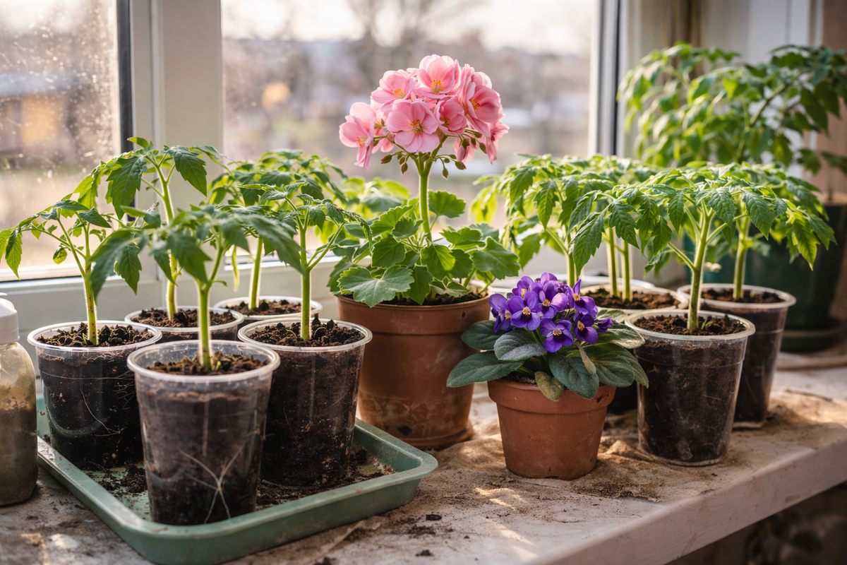 Каждый год одна и та же история: рассада всходит нормально, а потом начинает чахнуть. Листья желтеют, стебли истончаются, растения падают. Пыталась понять, в чём дело, но не могла найти причину. Грунт брала покупной, качественный. Семена свежие, проверенные. Поливала умеренно, не заливала. Света на южном окне достаточно. Что-то было не так, но что именно — непонятно. Подруга-агроном пришла в гости, посмотрела на мою рассаду. Сказала: убери влажную тряпку с батареи. Я вешала мокрое полотенце на радиатор под подоконником, чтобы повысить влажность. Вот она, моя главная ошибка. Читала, что рассаде нужна влажность 60-70%. Зимой батареи сушат воздух до 20-30%, это слишком мало. Решила увлажнять воздух доступным способом — мокрым полотенцем на батарее. Махровое полотенце держало много воды, испаряло интенсивно. Высыхало за пару часов, я снова его мочила. Получался постоянный поток влажного тёплого воздуха прямо на рассаду снизу. Казалось, что делаю правильно. Влагомер показывал 65-70% влажнос