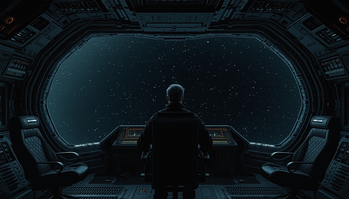 Рубка встретила его пультом, заваленным пылью, и огромным иллюминатором, за которым была пустота. Ни звёзд. Ни планет. Только чёрная бесконечность.