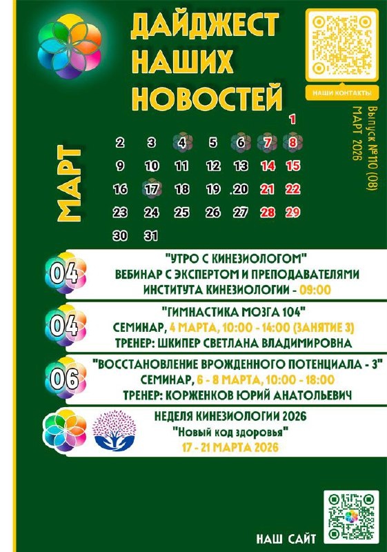 04 МАРТА - Утро с кинезиологом 04 МАРТА - Гимнастика мозга 104 06 МАРТА - Восстановление врожденного потенциала 3 17 МАРТА - НЕДЕЛЯ КИНЕЗИОЛОГИИ - 2026 ➡ ЗАПИСАТЬСЯ НА СЕМИНАРЫ ИЛИ ЗАДАТЬ ВОПРОС ⬅ Наш сайт Наши контакты #Институт_Кинезиологии #Кинезиология #Кинезиолог #Чобану_И_К #Целебное_прикосновение #Психотерапевтическая_кинезиология