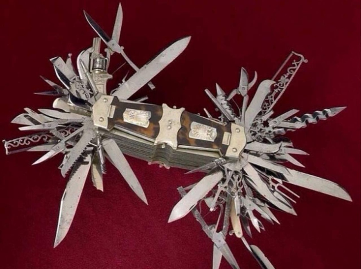 Этот складной нож был произведен в Германии в 1880 году фирмой Holler Co специально для одного из нью-йоркских магазинов. Он появился на 11 лет раньше швейцарского армейского ножа. «Матерь ножей» обладает внушительными размерами – почти 9 сантиметров в ширину и 22 сантиметра в длину. В «матери ножей» есть два клинка, несколько типов ножниц, штопор, две пилы, крючок для застегивания пуговиц, скальпель, приспособление для обрезки сигар, перьевая ручка, механический карандаш, зеркальце, опасная бритва, вилка, столовый нож и даже револьвер, а также многое другое. Все эти приспособления прячутся в рукоятке из черепашьего панциря. Терра инкогнита | Неизвестная земля