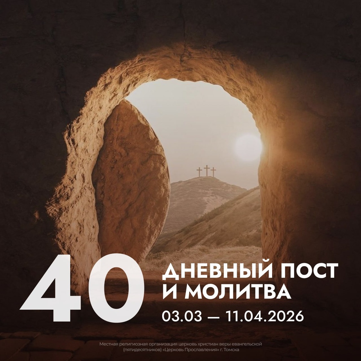 Дорогая церковь, приглашаем вас присоединиться к особенному времени — времени единства, тишины и духовной силы. С 3 марта по 11 апреля в нашей Церкви пройдет общий сорокадневный пост и молитва. «Господи, благослови народ Твой, помоги соблюдать пост и молитву по Твоему желанию. А Ты всегда желаешь прикасаться к нашим сердцам, чтобы они изменялись» Пс. 65:1-20 Пусть эти 40 дней станут для каждого из нас временем личной встречи с Богом! 🖤Вся подробная информация на нашем сайте: https://www.proslavlenie.ru/events/paskhalnyy-post-i-molitva