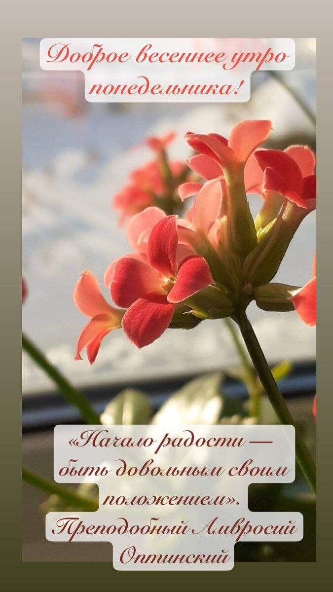 ! 🙌 Хочется начать с того, что выходные прошли в удивительно мирном ключе. Не так, как когда-то предполагалось в планах — что-то отложилось, а что-то, наоборот, состоялось совершенно неожиданно. И в этом было столько настоящего! Было и тёплое душевное общение, и радость быть на службе, и та тихая радость — просто быть. А ещё удалось сдержать обещание, которое когда-то давно дала себе. Это как раз перекликается с тем, что вчера выложила прайс-лист. Маленькая победа над собой и шаг к честности с собой. На календаре — первый понедельник весны. 🍃 Пусть пока ещё символически, но само ощущение воздуха уже другое. У нас, например, вовсю тает, и идёт такой тихий-тихий дождик... Он словно смывает всё лишнее и даёт ту самую надежду. Надежду на радость, на тепло, на счастье. Преподобный Амвросий Оптинский писал удивительные слова: «Начало радости — быть довольным своим положением». Вдумайтесь... Это не про то, чтобы опустить руки и плыть по течению, ничего не делая. Это про умение ценить то