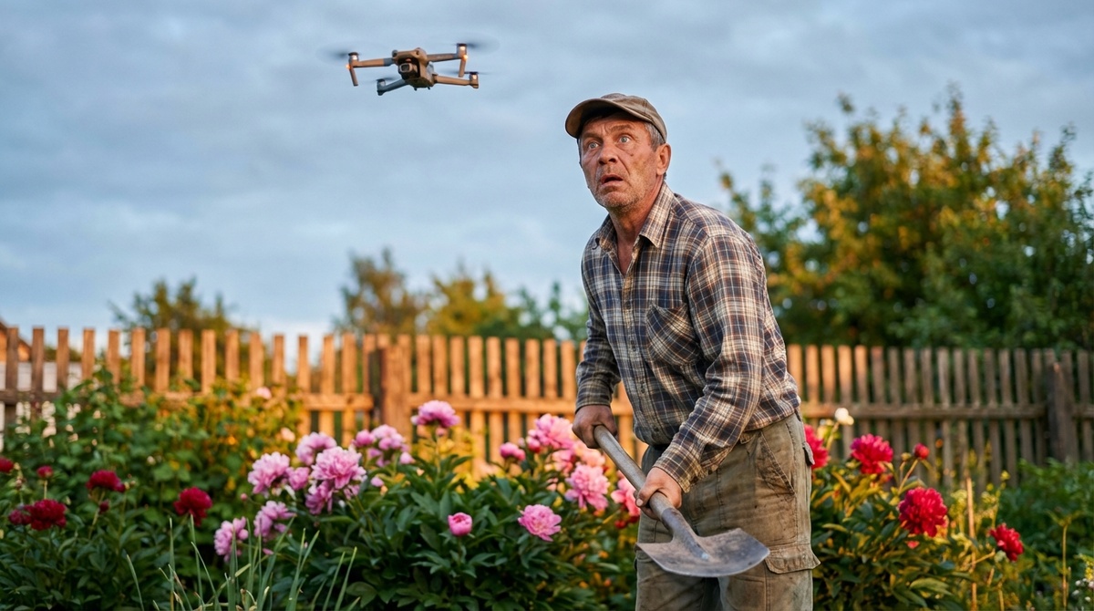 — Эй! Вы не имеете права! Это частная собственность! Я сейчас полицию вызову! — завопил он, пытаясь допрыгнуть до забора, словно хотел сбить дрон кепкой.