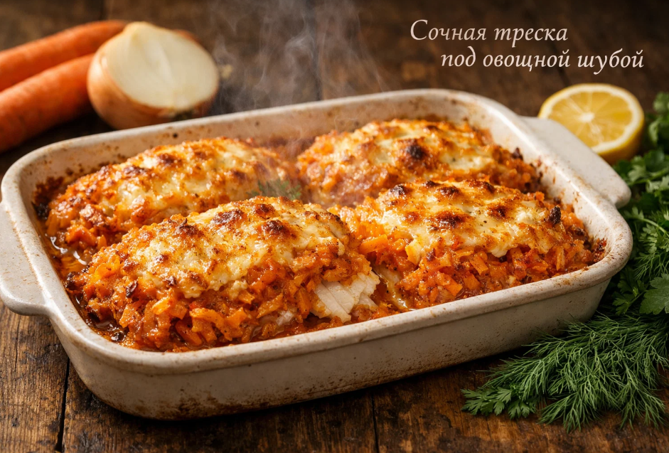 Запеченная рыба в духовке — это всегда беспроигрышный вариант для семейного ужина или даже праздничного стола. Треска считается одной из самых доступных и полезных сортов белой рыбы, но многие хозяйки сталкиваются с одной и той же проблемой: после запекания она получается суховатой, жесткой и не такой аппетитной, как хотелось бы. Секрет сочной трески кроется в правильной подготовке и особой технологии приготовления. Овощная шуба из лука и моркови становится настоящим спасением для этой нежной рыбы, позволяя ей сохранить все соки внутри и приобрести насыщенный вкус.