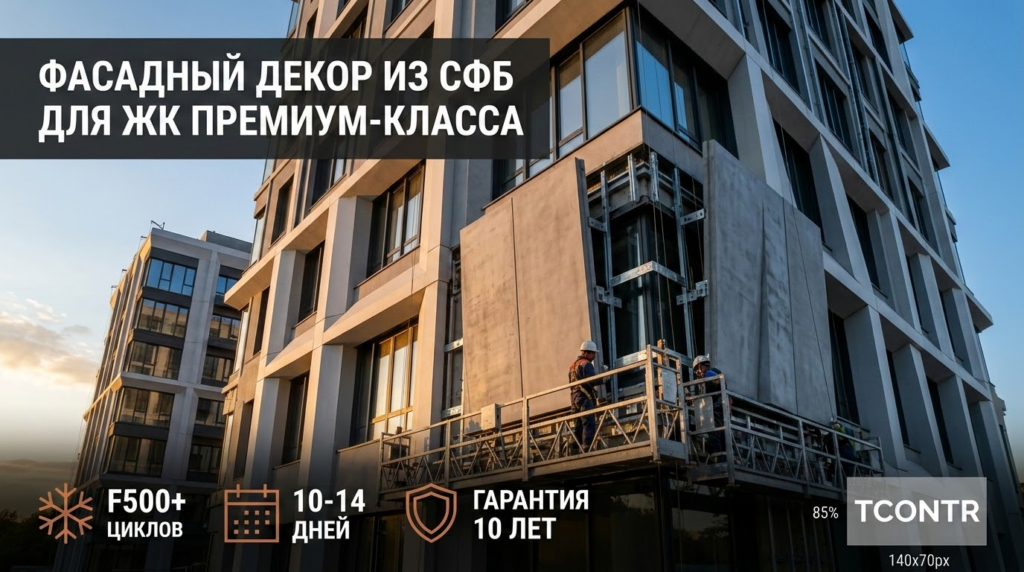 Контекст из практики: Для облицовки нового БЦ архитектор заложил сложный 3D-рельеф фасада с плавными изгибами. Вырезать такие элементы из мрамора стоило бы космических денег, а вес конструкции обрушил бы перекрытия. Задача была решена заменой камня на панели из стеклофибробетона — визуально отличить материалы с расстояния двух метров невозможно.