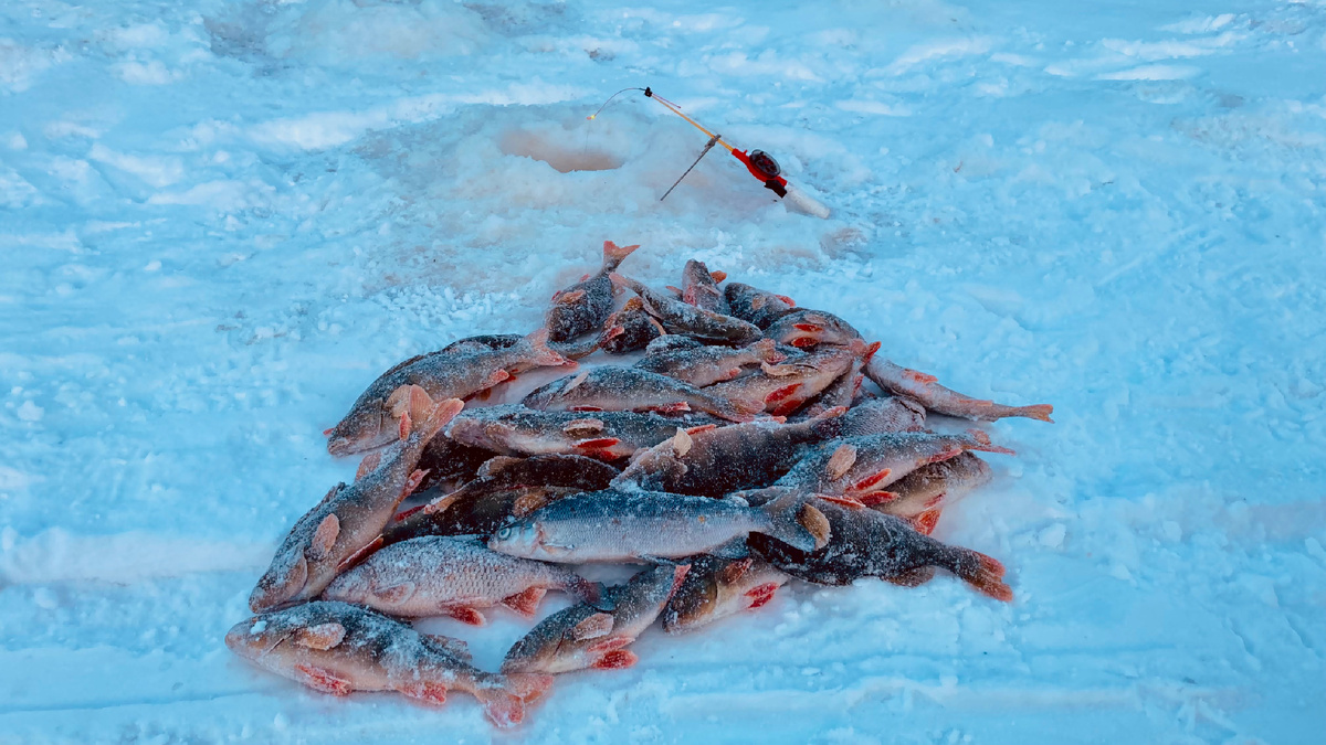 Солнце только-только встало. Встало, правда, ненадолго — зима у нас почти без света: поднимается ближе к десяти, а к двум дня уже садится. Но эти короткие лучи успели осветить лёд, блеснуть на чешуе и спрятаться за тучи.