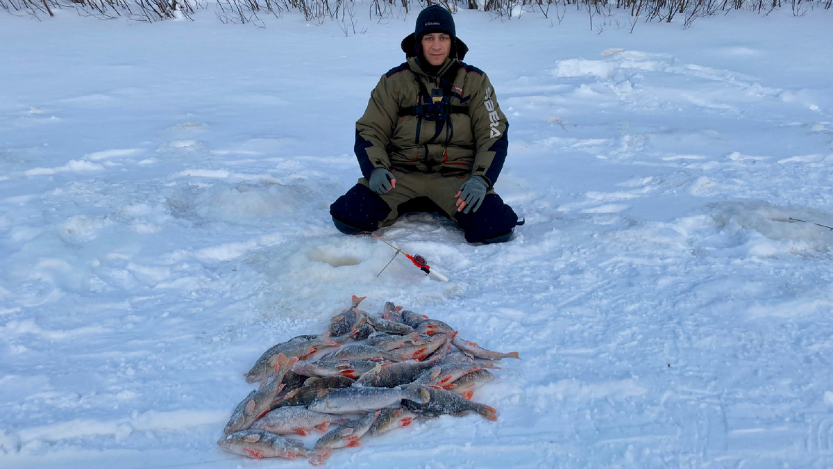Глубина в этом месте была от полутора до двух метров, течение хорошее, иногда мои удочки переплетались друг с другом. Но что удивительно: при расстоянии в 30 сантиметров между лунками, в одной брал исключительно окунь, а во второй — сорога и пара подъязков. Будто под водой невидимая граница проходила.