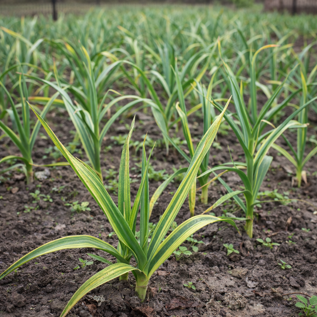 В апреле многие замечают странную картину: чеснок вышел из зимы бодрым, а потом вдруг на листьях появились жёлтые продольные полосы. Первая мысль — подмёрз. Но в большинстве случаев мороз здесь вообще ни при чём. Полосатое пожелтение — это совсем другая история, и важно понять её вовремя, чтобы не потерять будущий размер головки. Если чеснок пострадал от возвратных заморозков, обычно: