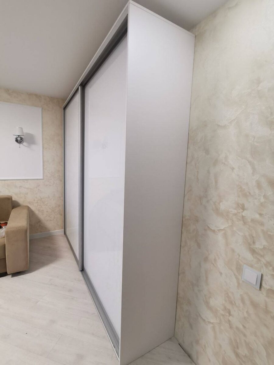 ✨ ▫️Двери: белое стекло ▫️ Профиль: алюминий, хром матовый ▫️ Корпус: Egger 16 мм, белый ▫️ Ширина двери: до 1200 мм Светлый, аккуратный и универсальный вариант для современного интерьера 🤍 Изготавливаем под ваши размеры и задачи.