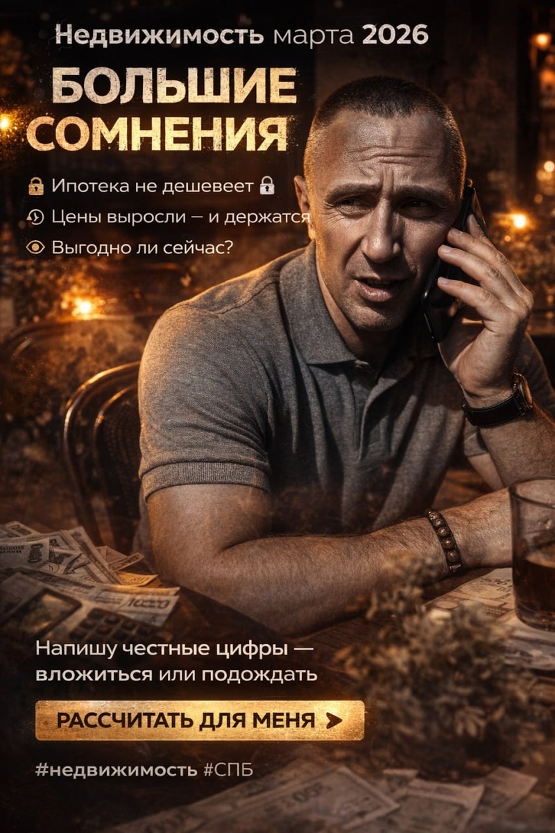 ? Не просто квадратные метры. Где твой мир. Где безопасность. Где твой дом. 📉 Сегодня рынок жилья в Петербурге и России в 2026 году — это не про бешеный рост или выгодный момент «сейчас или никогда». Это про выбор, который становится всё сложнее. 📊 Цены на квартиры в Санкт-Петербурге растут примерно на 4–7 % в 2026 году — это умеренный рост, близкий к инфляции, без резких скачков 📈, но и без серьёзного падения 📉. 💡 Ипотека всё ещё дорогая, доступность низкая, а многие покупатели смотрят, считать ли сейчас выгоду или оставить покупку на потом. 🔑 В такой ситуации главное — не паниковать, а строить стратегию: ✔️ понимать реальную стоимость объекта ✔️ оценивать перспективы района ✔️ учитывать ставки по ипотеке ✔️ и не выбирать “самую дешёвую, которую можешь позволить”, а ту, в которой ты будешь жить. 📌 Многие дома стоят на рынке долго, и сделки затягиваются, потому что продавцы держат цены “как раньше”, а покупатели ждут лучших условий. 📍 Почему сейчас действовать — не страх