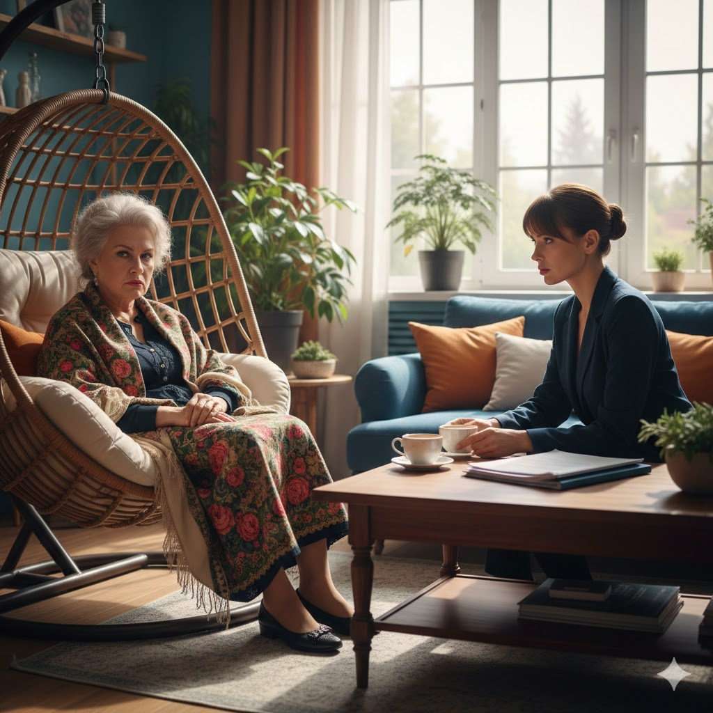 Свекровь, Антонина Петровна, даже не дрогнула. Она сидела в моем кресле-коконе, вальяжно раскачиваясь и поправляя новую шаль.