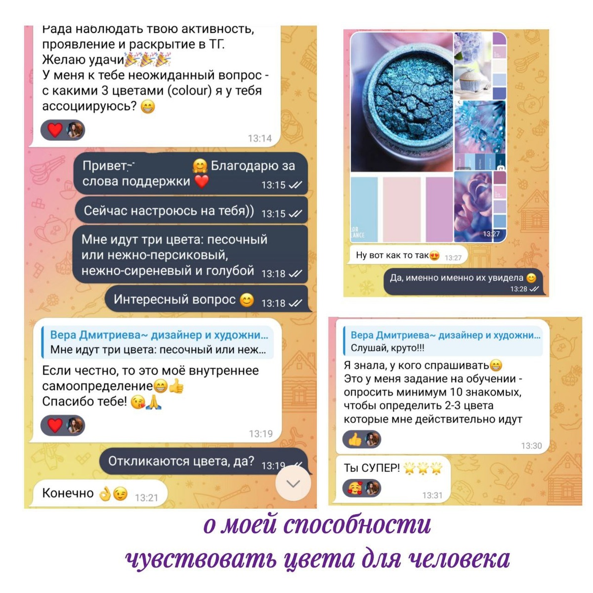 У меня есть особенность — чувствовать энергии человека и подбирать его цвета