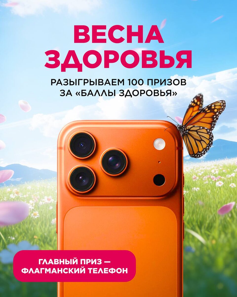 »! 📢 🌷Весна — самое время зарядиться здоровьем и удачей! А мы поможем сделать это ещё и выгодно! Условия участия: 🔴Наберите 10 «баллов здоровья»*, покупая товары из категории «Здоровье» в период с 2 по 7 марта. Чем больше «баллов здоровья», тем выше шансы! В конце акционной недели — 100 победителей! 🎁 Что разыгрываем? 👌1 место — Флагманский телефон 👌2-10 место — Парогенератор 👌11-20 место — Пылесос AVREOLOGY 👌21-30 место — Мультиповар AVREOLOGY 👌31-40 место — Фирменное стёганое покрывало 👌41-100 место — 300 руб. на личный счёт Подведение итогов — 8 марта, в воскресенье с помощью рандомайзера. Следите за новостями в нашем Telegram-канале! Акция действует только на территории России. 🌷Весна уже здесь — пора действовать! ✍️ Присоединяйтесь к Фаберлик, участвуйте в акции и выигрывайте!