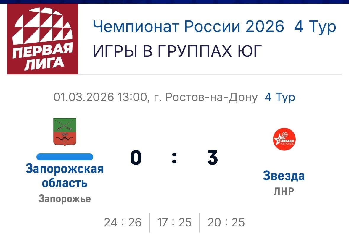 Хорошее начало весны: Группового этапа Чемпионата России первая лига ЮФО ! И вот такие итоги заключительного тура Группового этапа Чемпионата России первая лига ЮФО . Группа А 1. «Звезда» 2. «Спартак» 3. Сборная Запорожской области 4. Ростов - Волей -2 Совсем скоро узнаем своих соперников в финале который состоится 12 апреля в г.Анапа