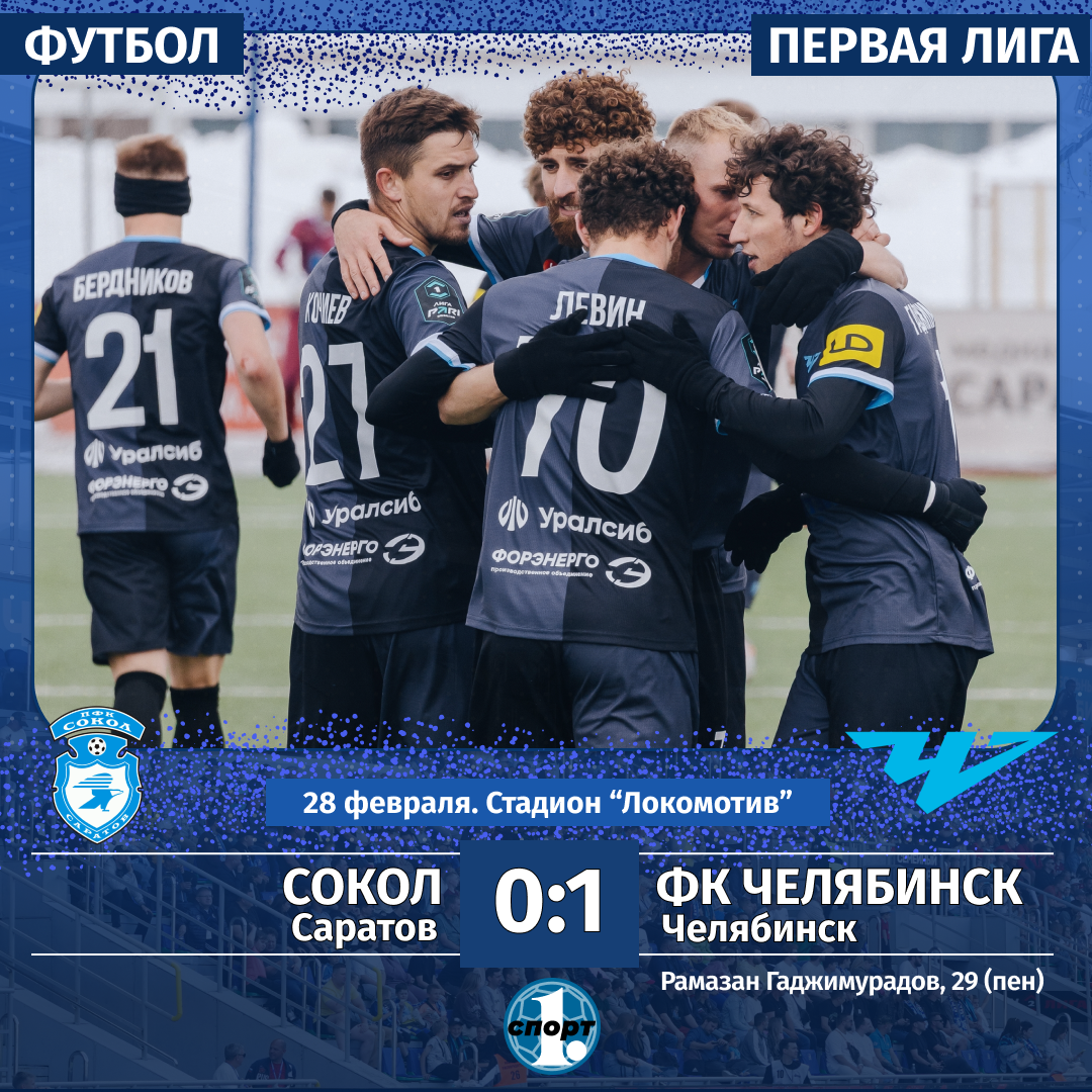 ФК «Челябинск» победно стартовал во втором этапе сезона в Первой лиге. Подопечные Романа Пилипчука накануне выиграли с минимальным счетом в гостях у саратовского «Сокола» — 1:0. Единственный мяч с пенальти на 29-й минуте забил Рамазан Гаджимурадов, это уже его 7-й гол в сезоне, сообщает пресс-служба ФК «Челябинск». Встреча получилась, может быть, не самой зрелищной и комбинационной, скорее, насыщенной борьбой практически на всем игровом пространстве и эмоциями. В лучших традициях весеннего футбола, когда команды еще не на пике формы, а показывать красивый и комбинационный футбол им мешает качество покрытия. В первом тайме больше активности было со стороны челябинцев, они чаще и острее атаковали и смогли это преимущество реализовать в забитый мяч. В одном из опасных эпизодов в штрафной площади хозяев сбили Гаррика Левина и пенальти красиво исполнил Рамазан Гаджимурадов, записавший на свой голевой счет 7-й мяч в сезоне. Вторая половина игры началась очень похоже: контроль от «Челябинска»