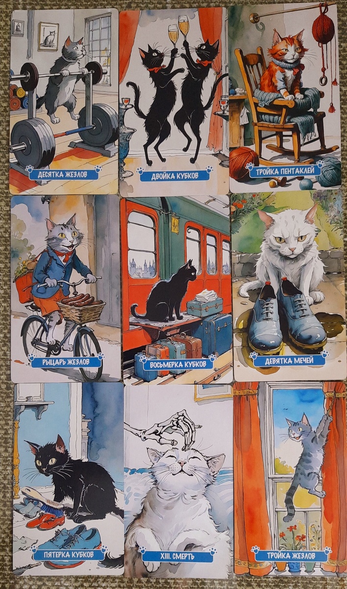 Третья декада: 3 Пентаклей → 9 Мечей → 3 Жезлов