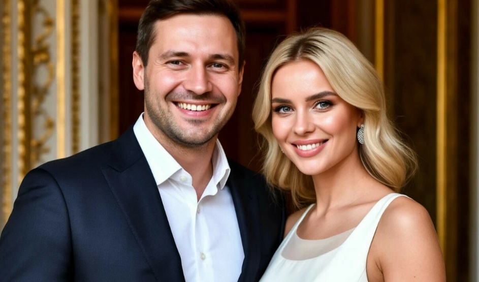 — подпись: «Известный предприниматель Андрей К. и его невеста Алина отмечают помолвку».