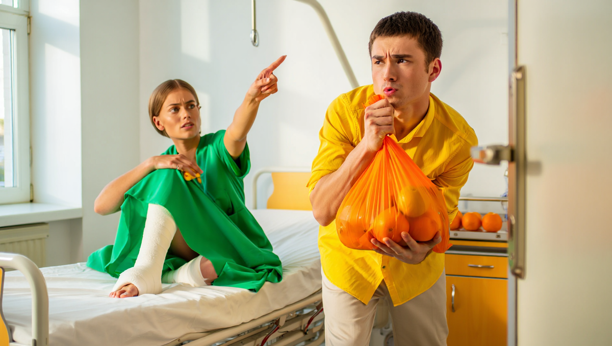 Андрей приехал на следующий день. Сел на стул, поставил пакет с апельсинами на тумбочку, нервно потёр ладони о колени.