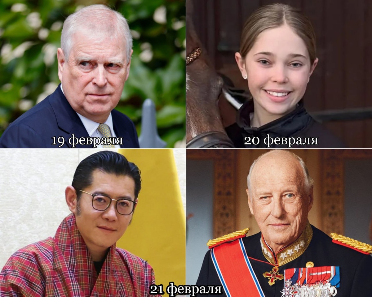)* Самый долгожданный, поскольку начиналась наша серия постов почти год назад со знака Овен! 🇬🇧 [Принц] Эндрю – 19 февраля 🇸🇪 Принцесса Леонор Шведская – 20 февраля 🇳🇴 Король Харальд V, 🇧🇹 король Джигме Кхесар Намгьял Вангчук (Бутан) – 21 февраля 🇸🇪 Принцесса Эстель, 🇯🇵 император Нарухито – 23 февраля 🇲🇦 Принцесса Лалла Хадиджа (Марокко) – 28 февраля 🇬🇧 Джеймс Огилви (сын Александры Кентской) – 29 февраля 🇬🇧 Сэр Тимоти Лоренс (муж Анны) – 1 марта 🇸🇪 Принц Оскар – 2 марта 🇸🇪 Принцесса Адриенна – 9 марта 🇬🇧 Принц Эдвард – 10 марта 🇲🇨 Князь Альбер II – 14 марта 🇧🇹 Принц Джигме Угьен (Бутан) – 19 марта *Даты встречала разные на начало и конец