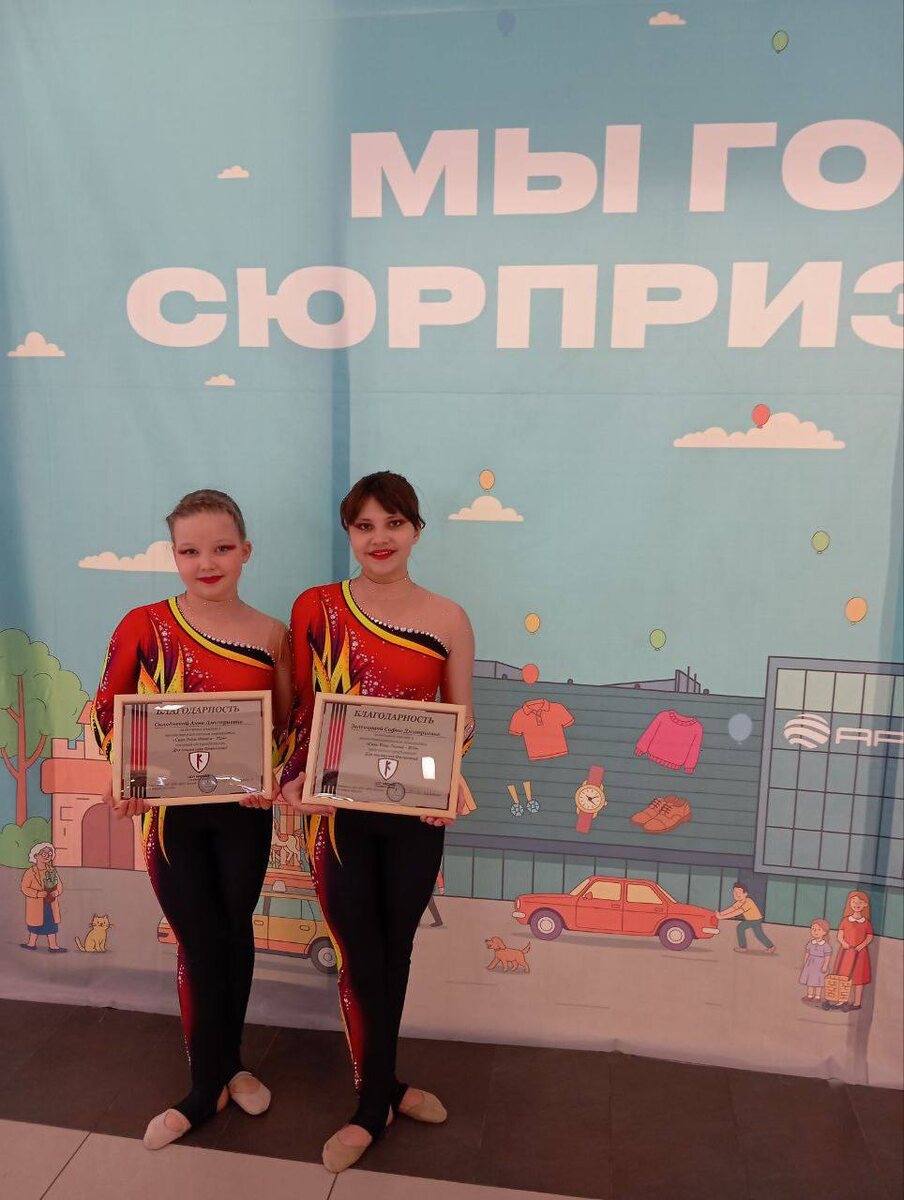 ! 🌸 Гимнастки команды «Ассорти» — София Зеленцова и Анна Скляднева — выступили с патриотическим номером «Смуглянка» на мероприятии от центра «Каскад» в ТРК Арена. Спасибо за ваши улыбки и талант! 🤸♀️🇷🇺 Записаться на тренировки можно по телефону: 📲 По телефону: +79009286378 📩 MAX: https://max.ru/id366228636200_biz